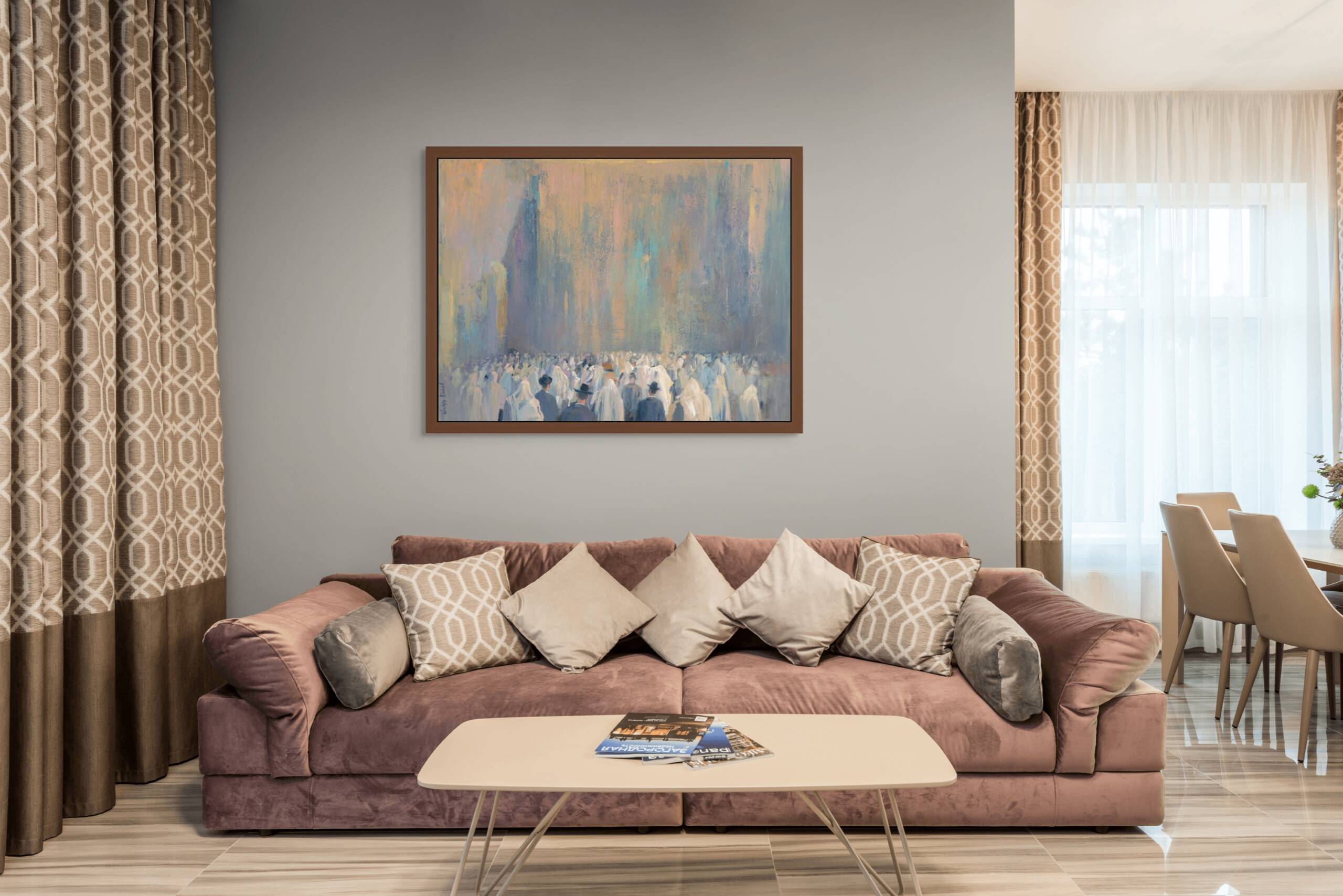 In this painting, I wanted to convey the feeling of light that arises at the Western Wall. That moment when people in prayer become part of the Wall itself.